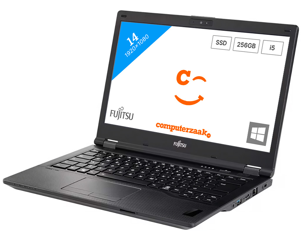 Deze 100% refurbished laptop van Fujitsu is erg goed nagekeken en gereinigd. Er zit een Intel Core i5 onder de motorkap, samen met 8GB DDR4 werkgeheugen. Omdat er een snelle 256GB SSD ingebouwd is heeft u voldoende ruimte om uw bestanden te bewaren. Dankzij de ingebouwde SSD schijf werkt uw laptop lekker snel. De laptop is makkelijk mee te nemen door het gewicht van maar 1.79kg. Deze refurbished laptop beschikt over een resolutie van 1920x1080 pixels op een scherm van 14 inch. De grafische berekeningen voor het scherm worden gemaakt met de Intel HD Graphics GPU. Ook een HDMI aansluiting, cardreader, webcam en Wifi met 5GHz ondersteuning kunt u terug vinden in deze laptop van Fujitsu.