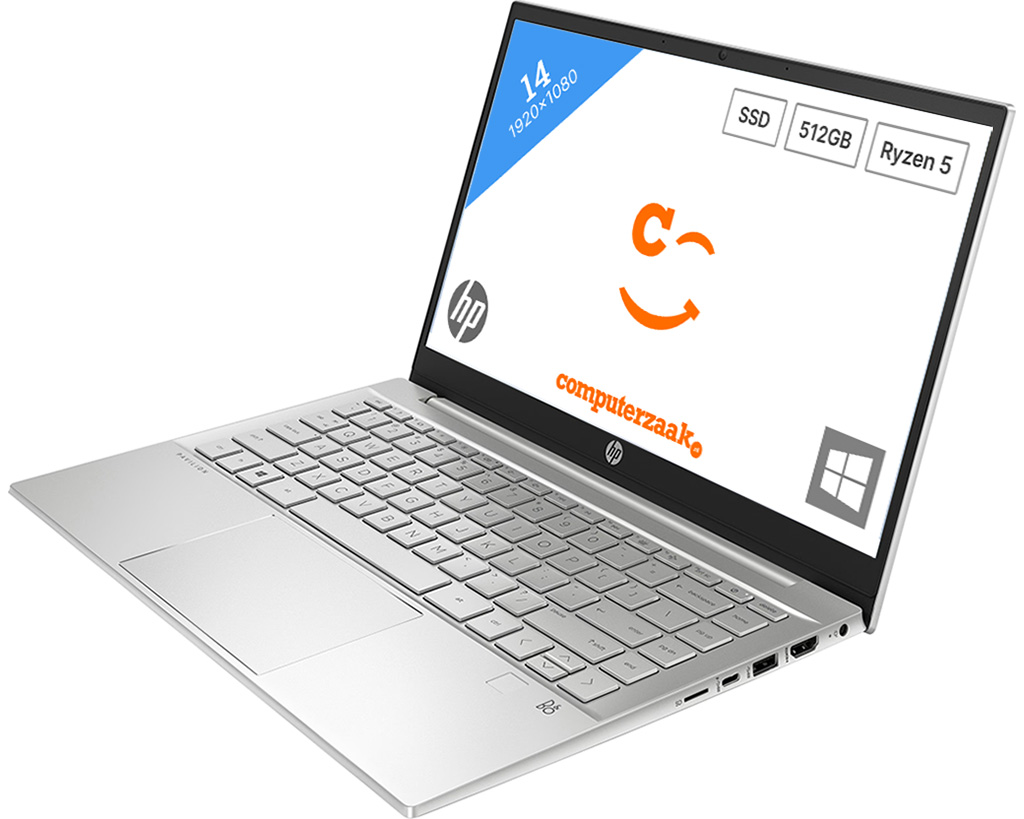 De refurbished Pavilion 14-ec1003au laptop is voor u gereinigd en volledig nagekeken op foutjes. Deze refurbished laptop heeft een AMD Ryzen 5 en is voorzien van 8GB DDR4 werkgeheugen. Op de snelle 512GB SSD kunt u uw bestanden in grote hoeveelheden opslaan. Een laptop met SSD opslag start in een paar seconden op. Deze laptop van HP heeft een 14 inch scherm en een resolutie van 1920x1080. De AMD Radeon Graphics GPU zit ingebouwd In deze laptop. Deze refurbished HP laptop heeft HDMI aansluiting, webcam, verlicht toetsenbord en Wifi met 5GHz ondersteuning.