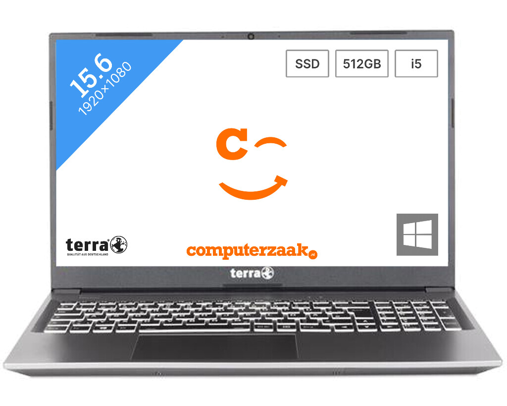 Deze refurbished Terra laptop heeft een Intel Core i5 en is voorzien van 8GB DDR4 RAM geheugen. Uw foto's, documenten en andere bestanden kunt u kwijt op de snelle 512GB SSD. Een SSD is meestal vier keer sneller dan een ouderwetse harde schijf. Om mee te nemen is deze laptop zo'n 1.75 kg. Het 1920x1080 pixels scherm dat In deze laptop zit, Is 15.6 inches. Een Intel Iris Xe Graphics Is ingebouwd voor de grafische berekeningen In deze laptop. Een handige HDMI aansluiting, cardreader, webcam, numeriek toetsenbord, verlicht toetsenbord en Wifi met 5GHz ondersteuning zit ook inbegrepen in deze laptop.